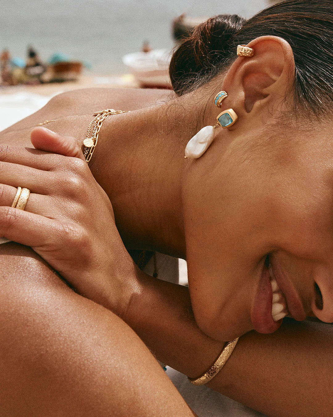A striking balance of elegance and individuality, these Blue Topaz Keshi Drops feature luminous keshi pearls paired with faceted blue topaz gemstones. Each pearl is uniquely shaped, celebrating nature's imperfections and adding a touch of organic charm. Set in high-polish sterling silver with 18k gold plating, these earrings bring a soft shimmer and vibrant hue to any look—day or night.