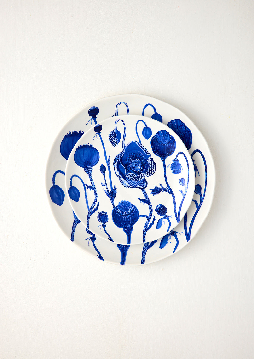 Celebrating our signature A&C ultra-bright Klein Blue in ceramic surface print, this new dinner service captures the intricate beauty of the wild poppy. A resilient bloom, known for springing to life so effortlessly from seed! For lovers of our ultra-vibrant blue, each piece showcases exquisite surface detailing, from the fine lines within the poppy’s stamens to the delicate texture of its seed heads.