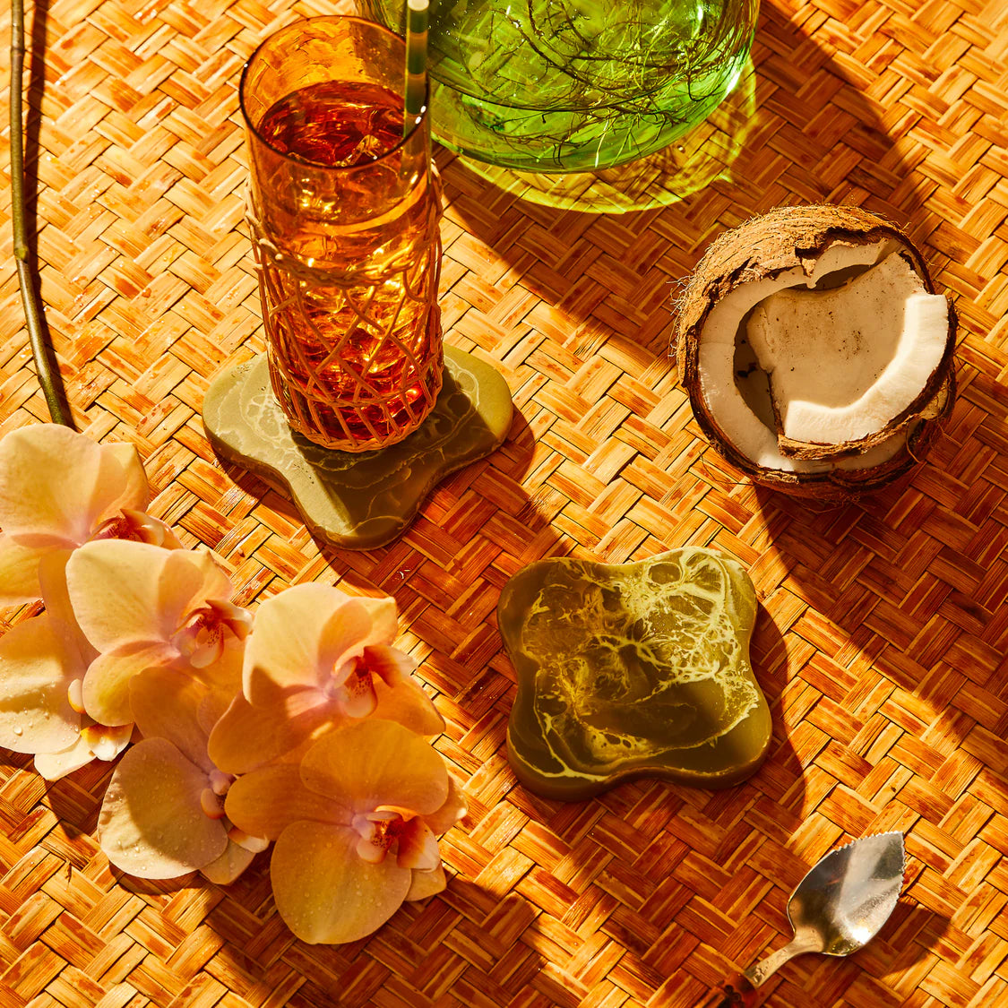 With flowing lines and a curved silhouette, this resin coaster set brings effortless contemporary style to any surface. Designed to elevate everyday rituals — from morning coffees to evening drinks and everything in between.